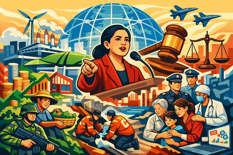 Dalam ranah politik dan hukum, ia menekankan komitmen terhadap demokrasi dan supremasi hukum. “Komitmen terhadap demokrasi, supremasi hukum, dan hak asasi manusia harus terus ditegakkan melalui regulasi yang memiliki legitimasi sosial yang kuat,” tegasnya.