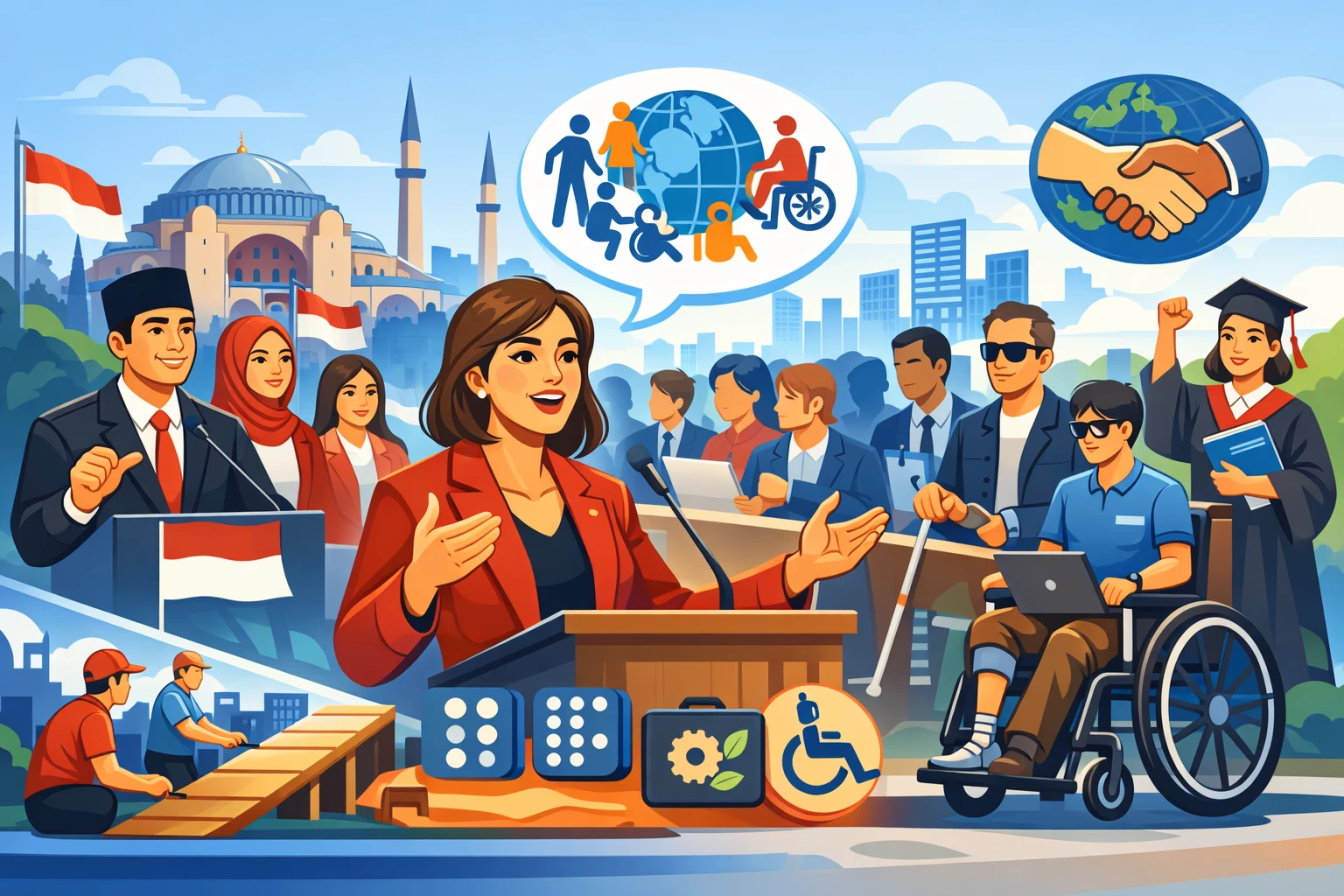 Tim Indonesia dipimpin Wakil Ketua BKSAP DPR RI, Muhammad Husein Fadlulloh, bareng Irine Yusiana Roba Putri dari Fraksi PDI-Perjuangan, serta Ruby Chairani Syiffadia dari Fraksi Gerindra. Di forum itu, mereka ngegas dorong pentingnya kesetaraan buat penyandang disabilitas, sesuai amanat Undang-Undang Nomor 8 Tahun 2016.