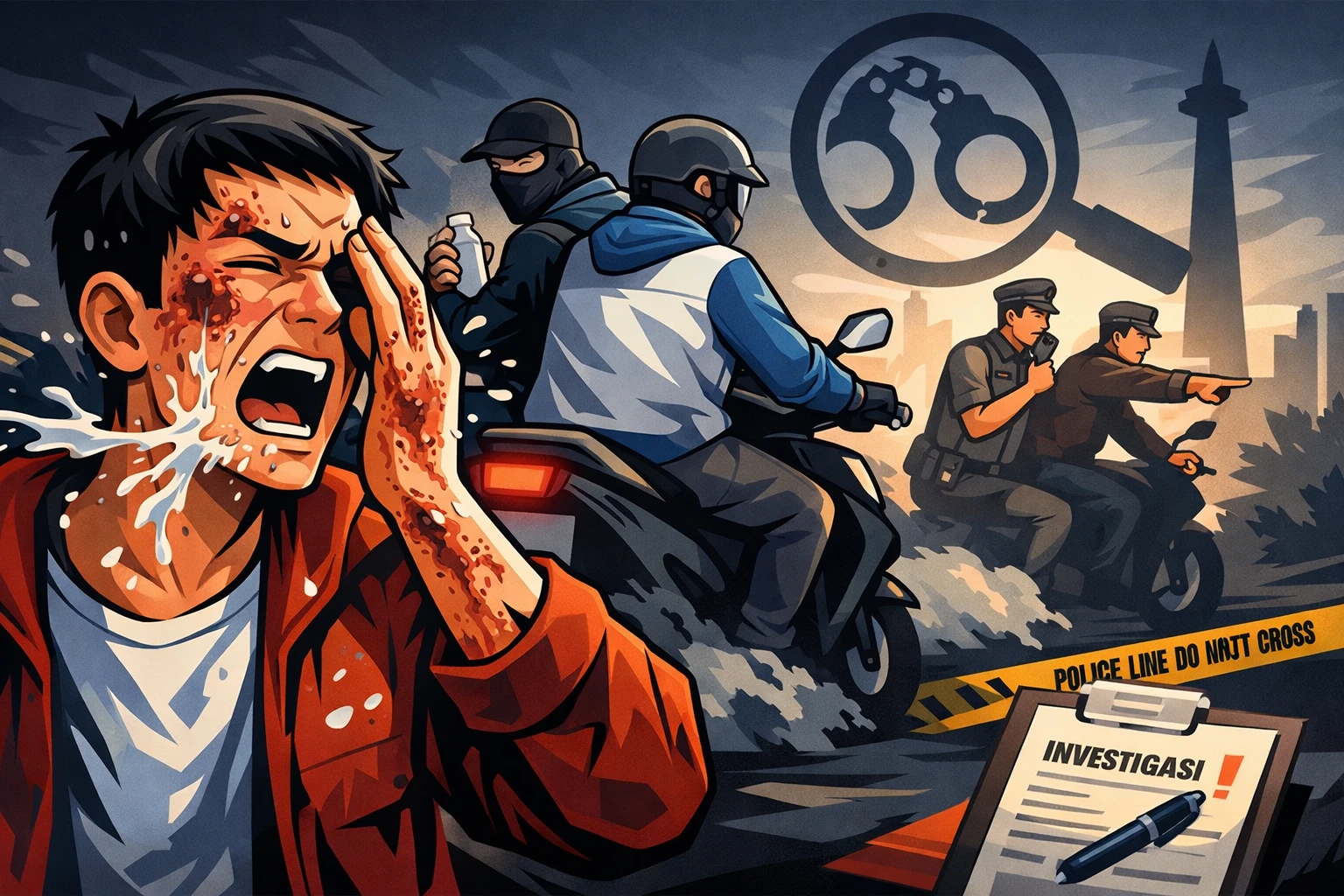 Serangan itu terjadi begitu cepat. Salah satu pelaku langsung menyiramkan air keras ke arah Andrie hingga mengenai beberapa bagian tubuhnya. Korban pun langsung berteriak kesakitan dan terjatuh dari motornya akibat serangan tersebut.