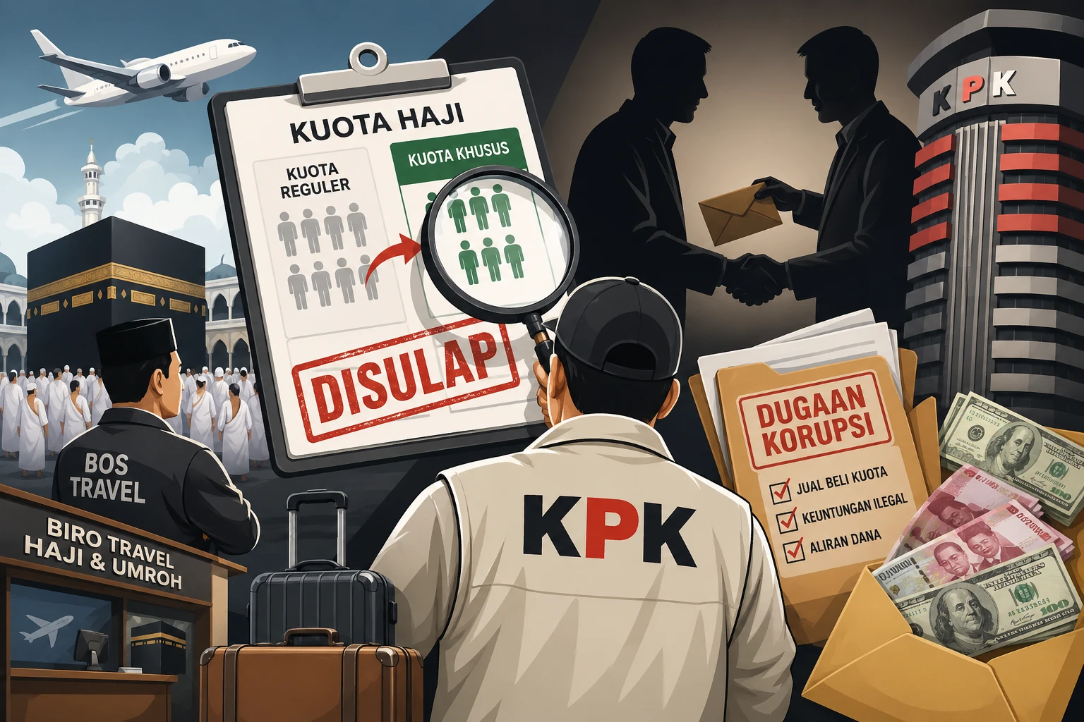 Manusiasenayan.id – Drama kuota haji lagi panas-panasnya. Komisi Pemberantasan Korupsi alias KPK lagi ngebut ngegas, maraton periksa para bos travel haji dan umrah. Fokusnya satu: ngulik dugaan main mata di balik penjualan kuota haji khusus yang katanya “nyerempet” jatah reguler. Kasus ini sendiri nyeret nama mantan Menteri Agama, Yaqut Cholil Qoumas.