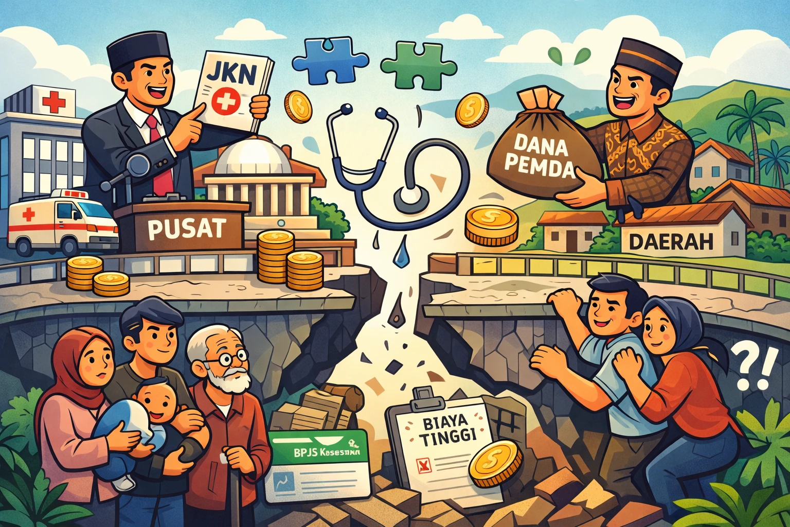 Masalahnya ada di pembiayaan. Selama ini, pemerintah pusat lewat skema Penerima Bantuan Iuran Jaminan Kesehatan (PBIJK) memang sudah menanggung masyarakat miskin. Tapi, kuotanya terbatas. Di sisi lain, kemampuan fiskal pemerintah daerah buat nanggung peserta lewat skema PBPU Pemda juga beda-beda. Ada daerah yang kuat, tapi ada juga yang ngos-ngosan.