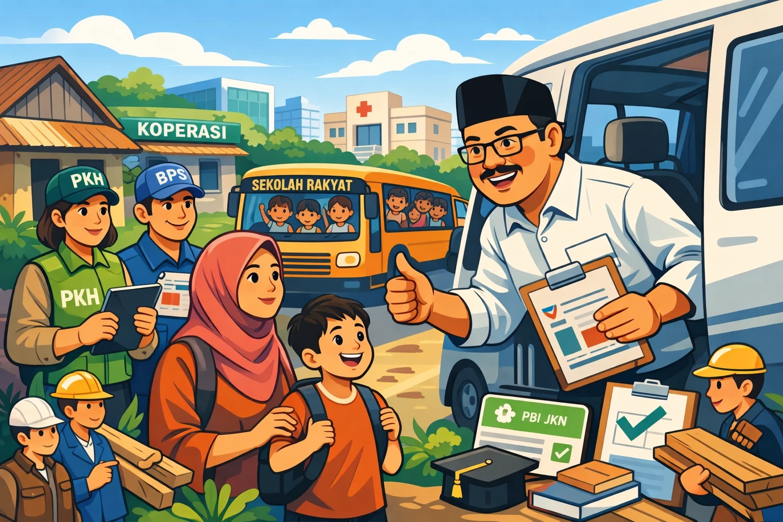 Lebih dari sekadar sekolah, Sekolah Rakyat ini digadang jadi paket komplit buat ngangkat taraf hidup keluarga. Anak dapat pendidikan, orang tua juga ikut diberdayakan. Mulai dari perbaikan rumah, akses ke koperasi desa, sampai jaminan kesehatan lewat PBI JKN.